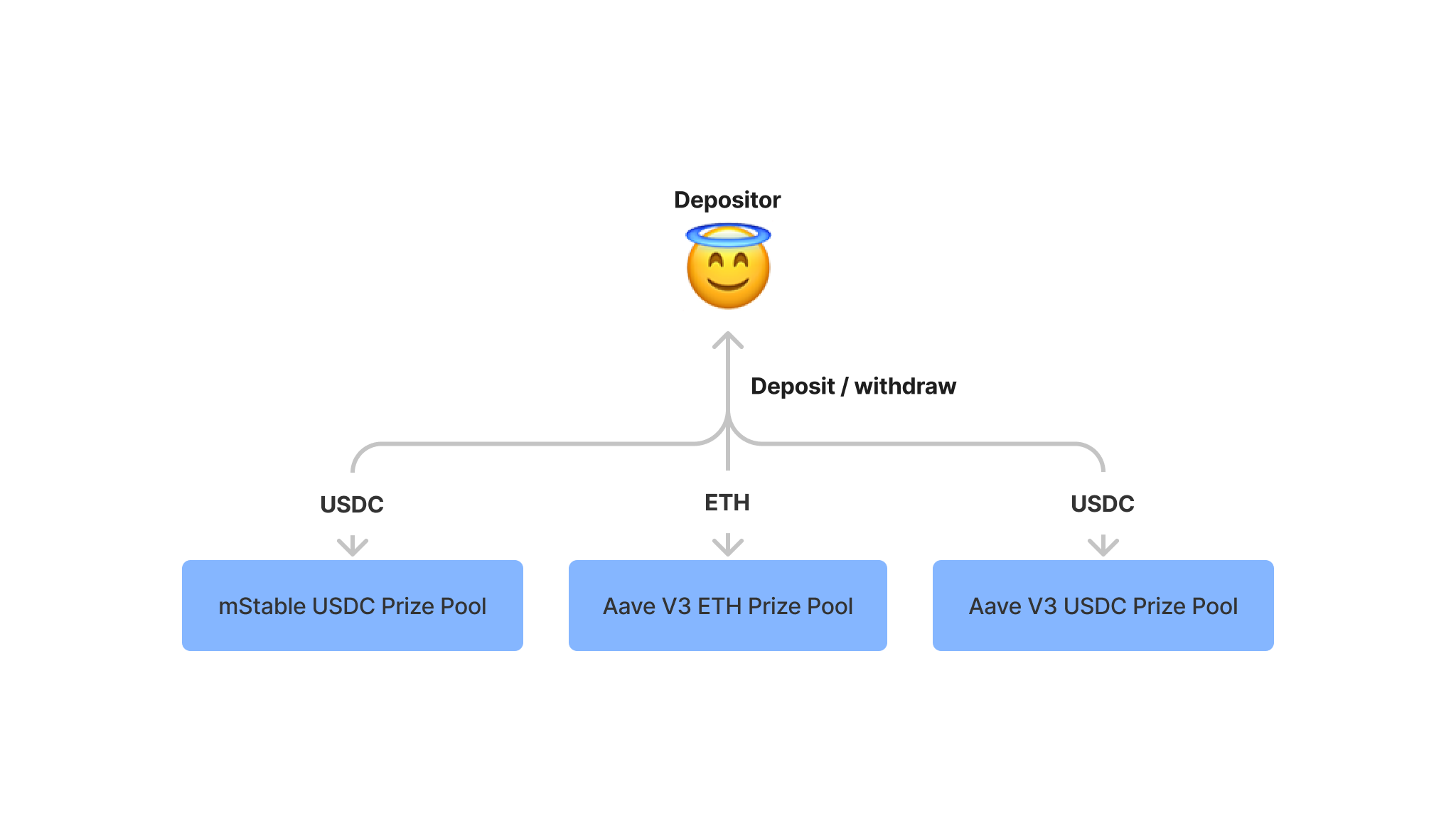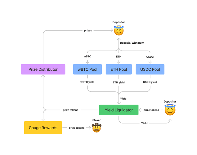 奖金池网络统一了奖金型式,这样一来,无论用户存入何种资产,都有资格赢得同样的奖金。每个奖池将使用相同的奖金分配器。这意味着: